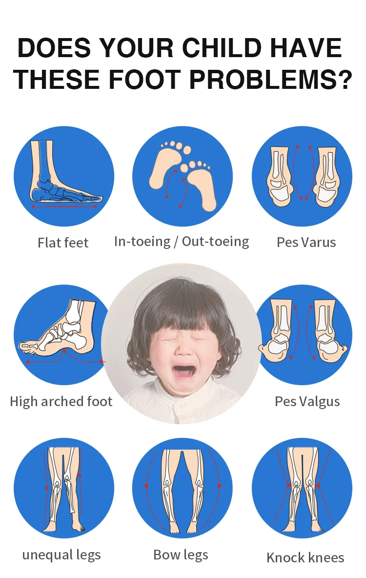 Supports the arch of the foot effectively and locks the heel and ankle, so that the baby can maintain dynamic balance in the foot during walking, improve the wrong stress on the feet, adjust and maintain the normal growth of the bones and muscles of the foot